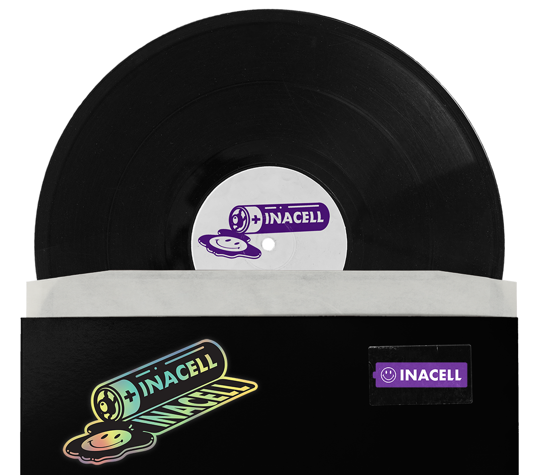 Logo and Branding for Inacel Record Label / Vinyl Mockup / Holographic Sticker.2020